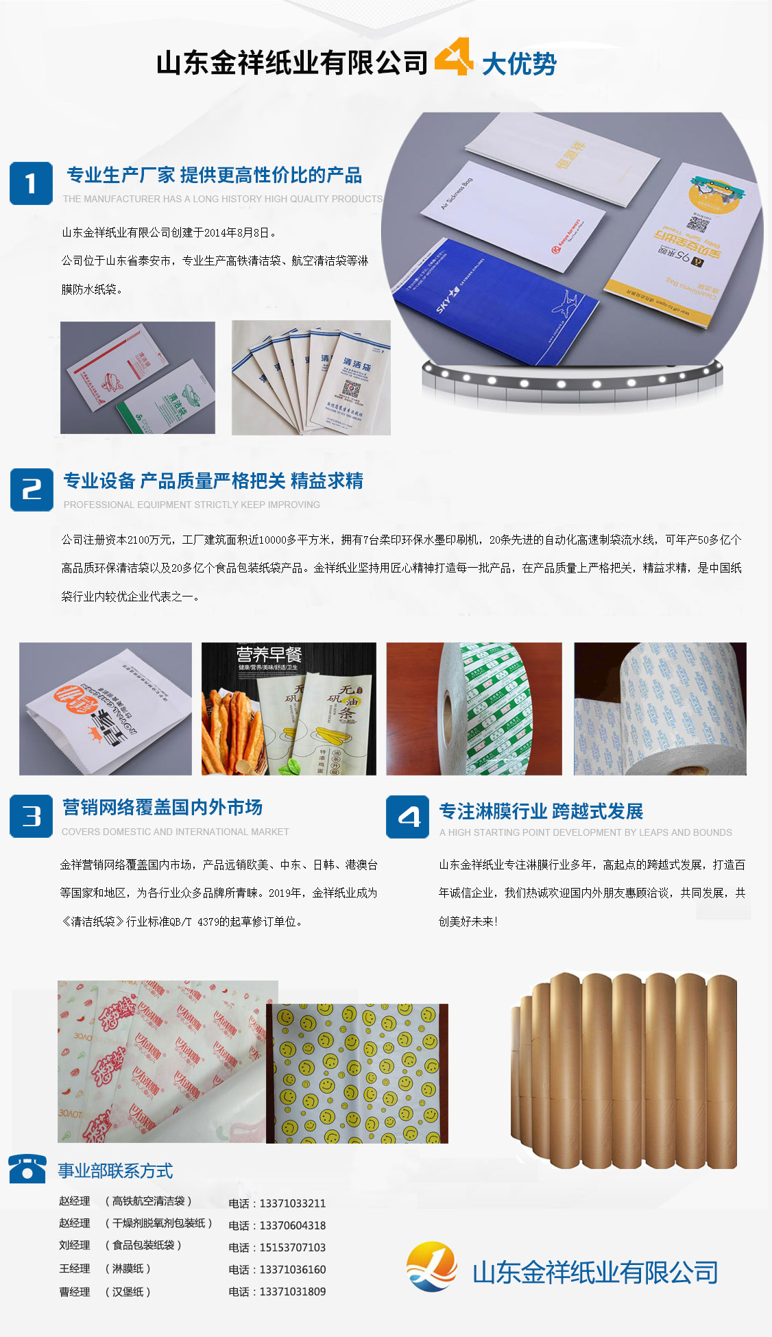 山東金祥紙業(yè)有限公司創(chuàng)建于2014年8月8日,公司位于山東泰安,專業(yè)生產(chǎn)高鐵清潔袋、航空清潔袋等淋膜防水紙袋。公司注冊(cè)資本2100萬元,工廠建筑面積近10000多平方米,擁有7臺(tái)柔印環(huán)保水墨印刷機(jī),20條先進(jìn)的自動(dòng)化高速制袋流水線,可年產(chǎn)50多億個(gè)高品質(zhì)環(huán)保清潔袋以及20多億個(gè)食品包裝紙袋產(chǎn)品。金祥紙業(yè)堅(jiān)持用匠心精神打造每一批產(chǎn)品,在產(chǎn)品質(zhì)量上嚴(yán)格把關(guān),精益求精,是中國(guó)紙袋行業(yè)內(nèi)較優(yōu)企業(yè)代表之一。金祥營(yíng)銷網(wǎng)絡(luò)覆蓋國(guó)內(nèi)市場(chǎng),產(chǎn)品遠(yuǎn)銷歐美、中東、日韓、港澳臺(tái)等國(guó)家和地區(qū),為各行業(yè)眾多品牌所青睞。2019年,金祥紙業(yè)成為《清潔紙袋》行業(yè)標(biāo)準(zhǔn)QB/T 4379的起草修訂單位。